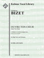 Ouvre ton cœur (Open your heart) dates from 1859, as George Bizet (1838-1875) was still attending the Paris Conservatory. Its Spanish flair anticipates the musical style he would later put to use in the opera Carmen. A bolero rhythm drives the passionate energy of the poem by Louis Delâtre, in which the singer implores their beloved to return their love "as a flower turns to the sun". The song demonstrates Bizet's early mastery of the harmonic color, delicate phrasing, and melodic invention for which he is so greatly admired today. Versions in the original key of in A Minor, and also transposed to G Minor and B Minor are also available from the publisher. Instrumentation: 2.2.2.2: 4.2.3.0: Perc(1): Str (9-8-7-6-5 in Set): Solo Soprano. Piano-conductor/condensed score.