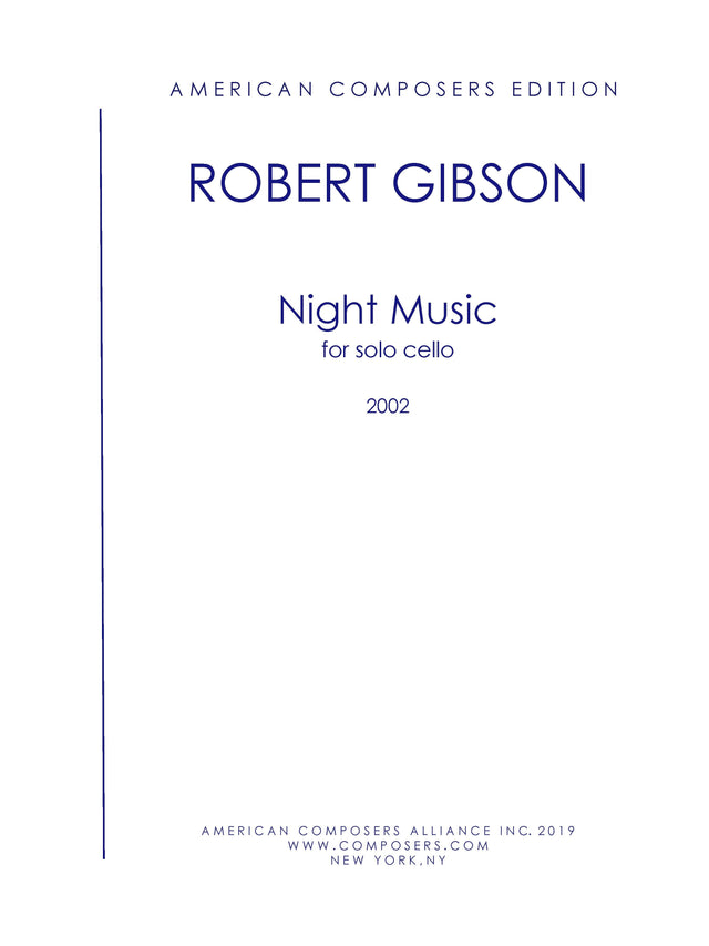 Night Music was commissioned by the Friday Morning Music Club of Washington, DC as the required work for the Third Triennial Johansen International Competition for Young String Players (2003). This prestigious competition is for young performers ages 13--17, and in 2003 the judges were James Buswell, Heidi Castleman and Aldo Parisot. The requirements for the commissioned work were that the duration be no more than three minutes and that the work is written so that it can be performed on violin, viola and cello without any instrument-specific editing to the piece. I tried to capture a fleeting glimpse of lyricism and technical virtuosity arising from a soloist inspired by the mystery and poetry of the night.