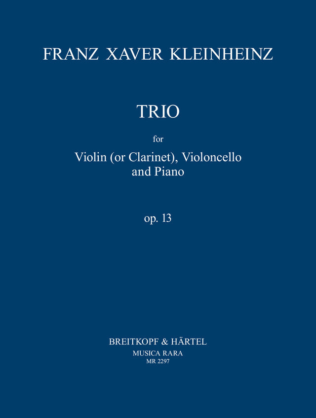 Franz Xaver Kleinheinz was employed at the court of Prince Elector Karl Theodor in Munich until 1799, when he left for Vienna after the Prince's death. There he met Beethoven, who was five years younger than Kleinheinz and who also very much admired him, so much so that Beethoven entrusted the young musician with arrangements of his own works. Moreover, Kleinheinz most likely owed it to Beethoven's recommendations that he obtained access to the most prestigious noble homes of the city, where he acquired an outstanding reputation as a piano teacher. This is when he composed the Piano Trio, Op. 13, which is now being presented in a modern edition. The title page of the sole surviving source – an alternative clarinet part that is unfortunately no longer extant – refers to an edition published in Vienna in 1802.