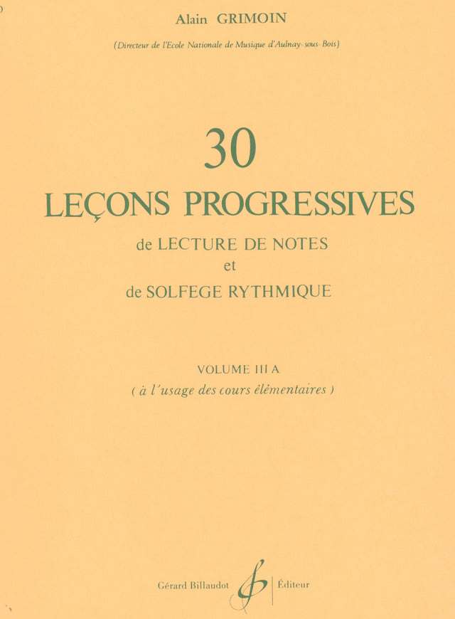 Grimoin: 30 Leçons progressives de lecture de notes et de solfege - Volume 3A (Elémentaire I)