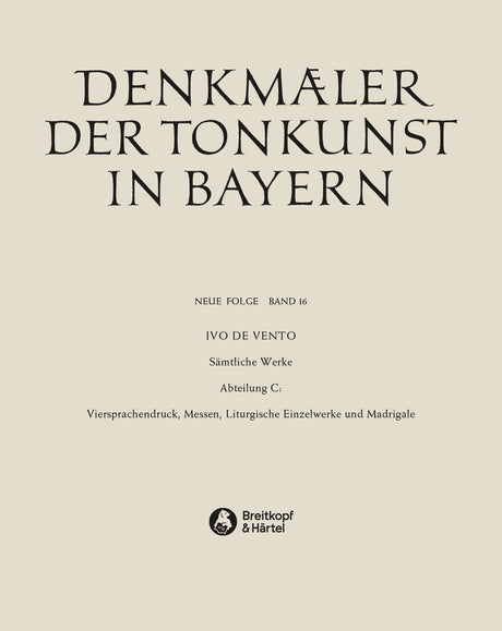 Vento: Complete Works - Volume 5C (Masses, Madrigals, & Other Works)