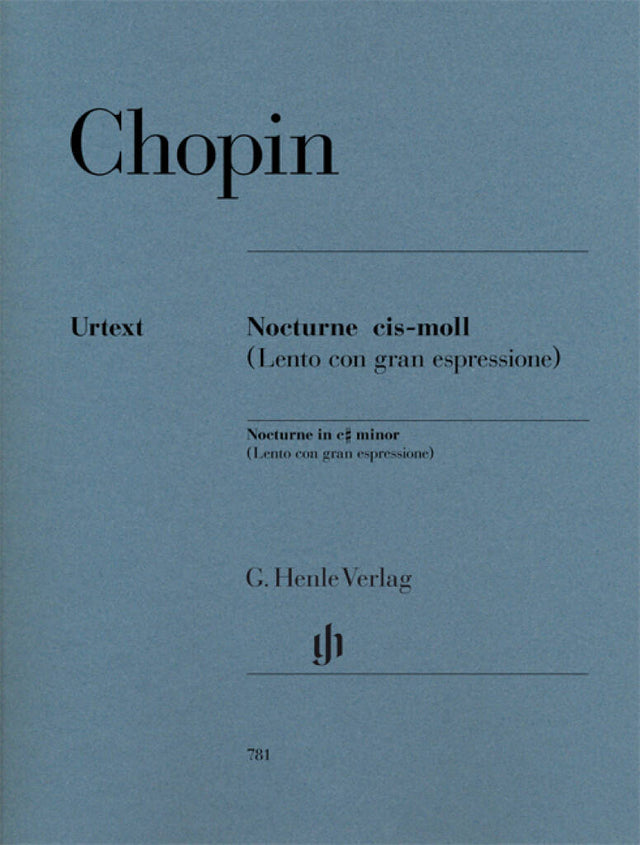 Roman Polanski's successful film The Pianist has focused attention on the Chopin's Nocturne in C-Sharp Minor (Lento con gran espressione). Henle's edition presents the work in two versions. One derives from the handwritten copy which was owned by Chopin's sister Ludwika. The other is a noticeably different original version found in Chopin's original draft, now preserved in the Chopin Museum in Valldemosa (Mallorca). It is your turn to play the music from The Pianist.