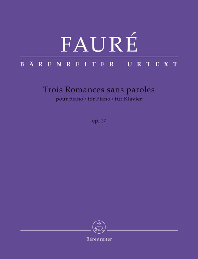 This Urtext edition takes all available sources into account, including the recording by Fauré himself and an early four-hand version of No. 3. It is based on the musical text of the "Œuvres complètes" of Gabriel Fauré and also contains the first version for piano two-hands of the third "Romance sans paroles" in the appendix.