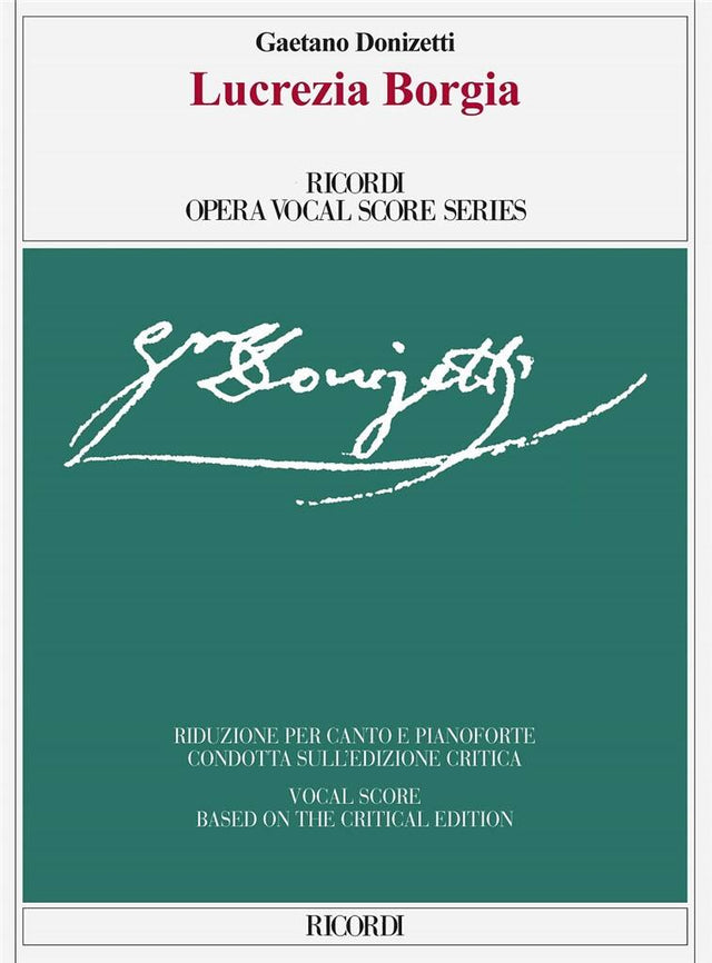 Donizetti's Lucrezia Borgia was premiered at Milan's Teatro alla Scala on 26 December 1833 and is considered one of the composer's most important and innovative operas of the 1830s. Although, because of censorship issues, particularly in the south of Italy, it was initially slow to become popular, by the late 1830s it had become one of the composer's most popular operas, both in Italy and abroad, and remained an essential part of the composer's oeuvre until at least the end of the nineteenth century. Remarkable for its daring subject matter (with an unconventional, forceful heroine), it is also renowned for its challenging mixture of the comic and the tragic, something very unusual at the time and clearly an important influence on Giuseppe Verdi's middle period masterpieces. The present reduction for voice and piano derives from the critical edition of the score, recently published in this catalog: is based on Donizetti's autograph manuscript (housed in the Ricordi Archives in Milan), on the libretto for the premiere, on several printed editions of voice and piano, and on numerous additional scores of the period. It presents for the first time all the numerous additions that the composer made to the score over the course of ten years: a fascinating record of his changing music dramatic attitudes during this period. There is also a synthetic historical reconstruction of the genesis of the opera and of the description of the Sources as well as a selection of most interest to singers of Critical Commentary Notes.