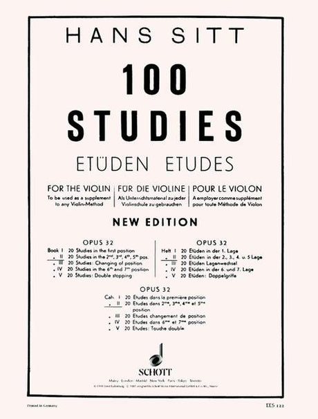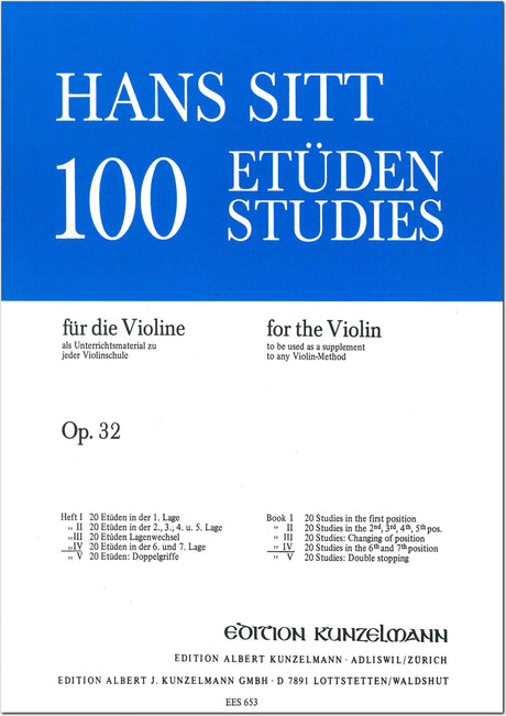 Sitt: 100 Studies, Op. 32 - Book 2 (20 Studies in 2nd, 3rd, 4th and 5th positions)