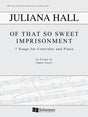 Juliana Hall wrote her song cycle "Of That So Sweet Imprisonment" for mezzo soprano Stephanie Blythe, for whom Hall had expressed a desire to write a piece. Blythe accepted Hall's proposal, and her request was that Hall write a song cycle for contralto voice. in recounting her motivation for writing this piece, Hall - in a discussion with Blythe at the Fall Island Vocal Arts Seminar (where Hall was the Guest Composer in 2018) - said "You know what I think is really so wonderful is how you [Blythe] communicate, from here to there, right to the audience...it just speaks, the words, the text, come right...right to the heart of each person...I was thinking, what a wonderful person, what a wonderful voice...to be able to communicate...I've just got the most perfect singer to take these songs, this wonderful subject of love, and present it to the world"
