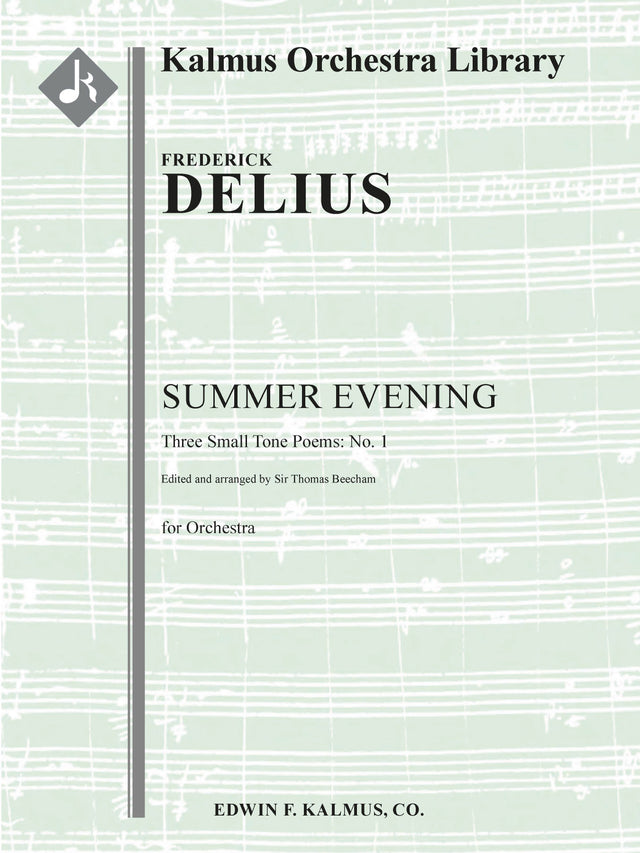 SUMMER EVENING is the first in a set of three short descriptive pieces (THREE SMALL TONE POEMS) for orchestra by Frederick Delius (1862-1934). Composed in 1890, it was not heard in concert until Sir Thomas Beecham conducted the premiere at the Delius Festival in 1946. Like many of his works, it eschews narrative for evocative mood setting which he encouraged listeners to interpret as they wish. Instrumentation: 3 (3rd d. Picc).2.2.2: 4.2.3.1: Timp: Str (9.8.7.6.5 in set).