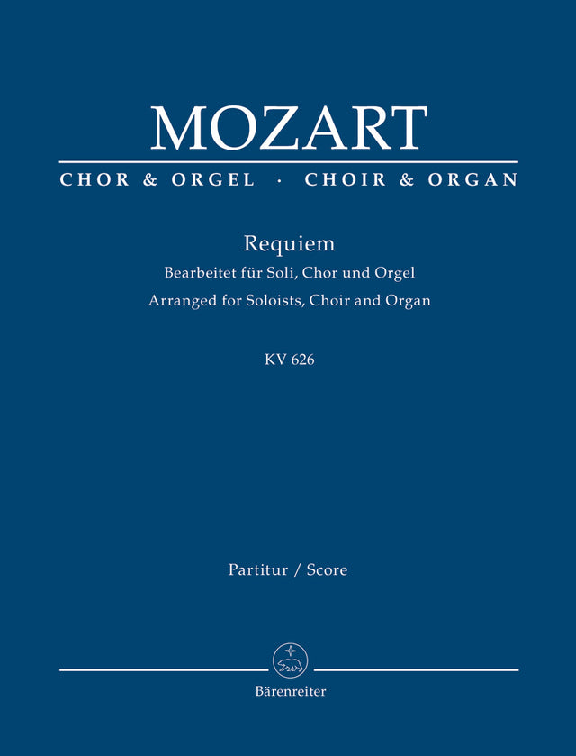 Mozart's Requiem has entered the realm of myth. This is surely the best-known of all sacred choral works and is performed all over the world. Now a new version for solo voices, chorus and organ allows this legendary masterpiece to be performed without orchestra, and thus without strain on the budget. The choral writing has been taken unaltered from the Urtext of the New Mozart Edition, while the organ part by Martin Focke adheres strictly to the original orchestral writing. The result is a version as convincing as it is self-contained. Franz Xaver Süssmayr's additions have been used to complete Mozart's unfinished original.