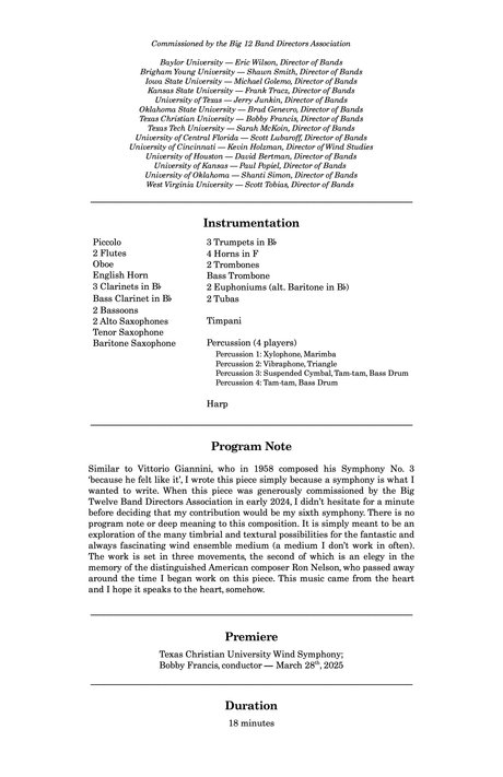 Options: Solo Part with Piano Reduction, Full Score – Wind Ensemble Version, Full Score..."Sonorous"