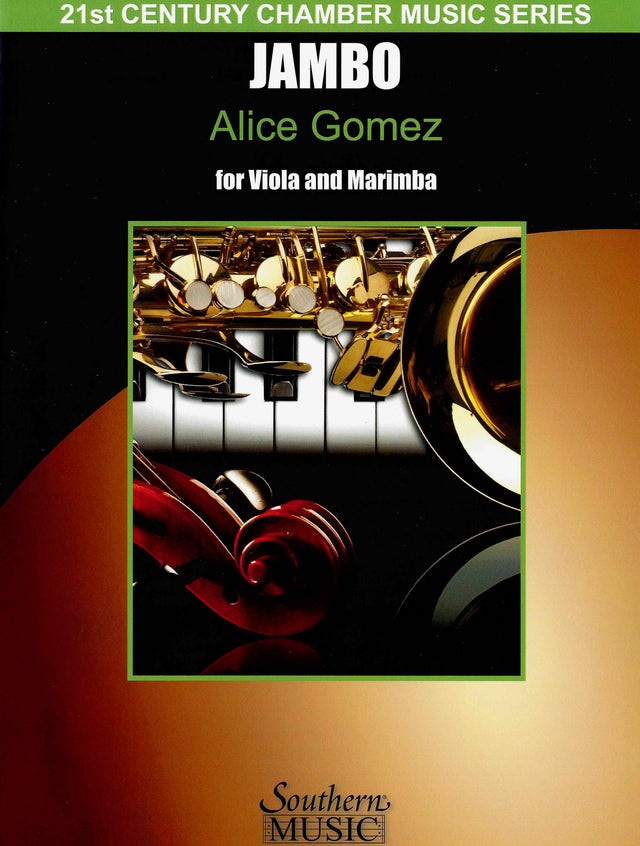 Jambo was commissioned in 2003 by the Texas Lutheran University Department of Music. It is intended to be a friendly piece of music, as Jambo is the Swahili word for "Hello." It is a call for more kindness in the world as we all journey through this life. The viola part requires two playing techniques: bowed and pizzicato. The marimba part also requires two playing techniques: open sound and dead strokes where the marimba player strikes the mallet into the bars.