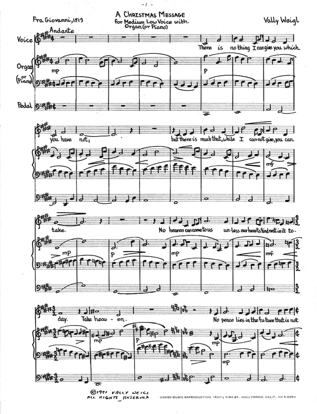 • Instrumentation: Organ (or Piano), Medium-High Voice