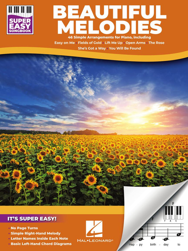 Even if you've just started to learn how to play keyboard, you can play nearly 50 beautiful pop and standard songs with iconic melodies thanks to this Super Easy Songbook. These arrangements feature no page turns, simple right-hand melodies, letter names inside each note, and basic left-hand chord diagrams along with lyrics. This edition features 46 songs, including: All Is Found • Bridge over Troubled Water • Canon in D • Crazy • Dos Oruguitas • Easy on Me • Faithfully • Fields of Gold • Fur Elise, WoO 59 • Hey Jude • I See the Light • Let It Be • Lift Me Up • A Million Dreams • Open Arms • Reflection • Sunrise, Sunset • Unchained Melody • What Was I Made For? • You Raise Me Up • You Will Be Found • and more.