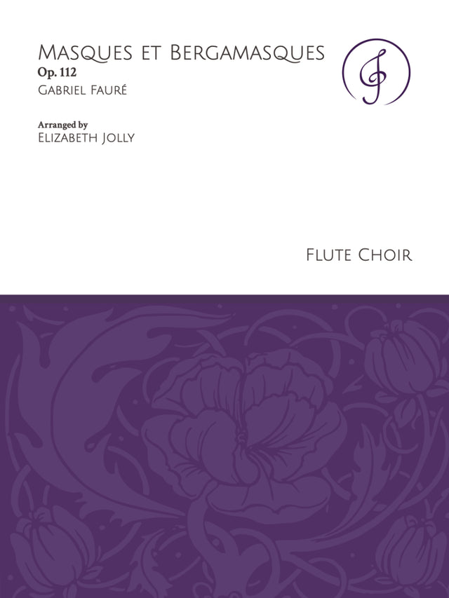 Composed in 1919 for a theatrical entertainment commissioned by Prince Albert I of Monaco, Masques et Bergamasques is one of Gabriel Fauré's last orchestral works. The title evokes the playful, masked figures of the commedia dell'arte and the rustic bergamasque dance, blending elegance with a hint of nostalgia. The suite combines new material with reworked earlier pieces, embracing a neoclassical style while retaining Fauré's signature lyricism. This flute choir arrangement is suitable for intermediate to advanced flutists.