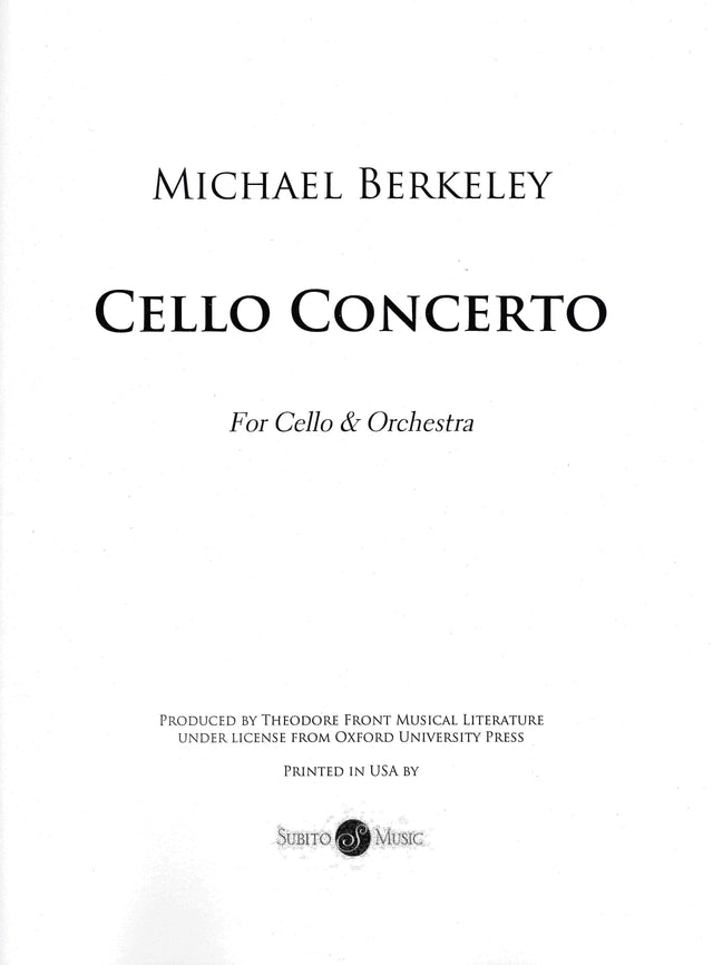 Michael Berkeley's Cello Concerto was written early in 1983 to a commission from the Milton Keynes February Festival and first performed by Robert Cohen and the London Mozart Players conducted by Nicholas Kraemer. It is a single-movement chamber concerto deliberately scored for the forces of the Boccherini and Haydn concerti. Light-hearted in spirit, it could easily be described as a divertissement.