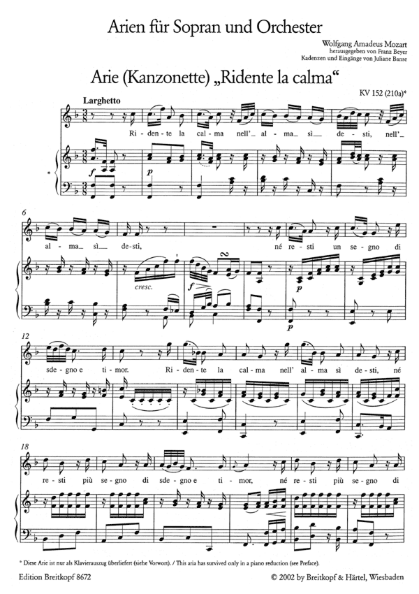 • Instrumentation (this edition): Piano Reduction, Soprano