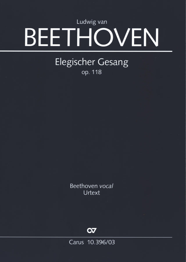 Ludwig van Beethoven composed his Elegiac Song in memory of Eleonore Pasqualati, the wife of his long-standing friend and patron Johann Baptist Freiherr von Pasqualati zu Osterberg, who died young. The short choral piece, alternating between quiet pain and drama and with a discreet string accompaniment, was published for the first time in 1826. in addition to the vocal and string parts, there is a piano part which can be used as an alternative to the strings. This piano part is used as the basis of the Carus vocal score. A performance with just chorus and piano is therefore possible – although not the original version, this was one which was widespread from the beginning.
