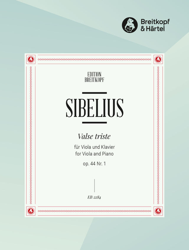 The Valse triste is part of the incidental music tin several movements of Kuolem a, Op. 44, which Sibelius composed in 1903. Kuolema has remained almost unknown until today, although Valse triste is one of the most frequently played pieces by the Finnish composer. The original publisher Breitkopf & Härtel provided in a Major impulse to its popularity growth, for example by publishing the versions for piano (EB 2224) or string orchestra (MM 2355836), emanating from Sibelius himself . Incidentally, the arrangements by Friedrich Hermann (for violin / viola / cello / flute and piano) and by Otto Taubmann (for piano duet) are authentic. They were commissioned by the publisher after Sibelius gave his agreement. in fact, the composer, who was not always mildly disposed towards such undertakings, even went over them, as can be seen in the composers copies.