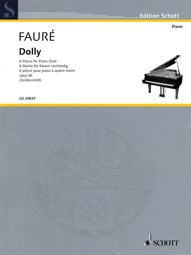 Dolly Suite is a collection of sound gifts that Fauré gave to little Dolly (Hélène Bardac, daughter of the mezzo-soprano Emma Bardac) on special occasions. Childlike scenes like Ketty-Valse, Le jardin de Dolly and Tendresse are put into music. in the 19th century, the phenomenon of childhood was set to music in many different ways. Fauré's collection Dolly Suite ranks among a vast number of compositions for children, such as Schumann's Kinderszenen, Bizet's Jeux d'enfants or Debussy's Children's Corner - compositions dealing with childhood as an ideal although they are on no account easy works which can be played by children. Unlike that of Fauré: Dolly Suite unites artistic interest and child-oriented realization. The pieces can be played by teacher and pupil or by two pupils of different performance levels. The primo part can be easily mastered after one to two years of piano lessons, providing tonally varied character pieces and thus offering an entertaining approach to piano duet playing.