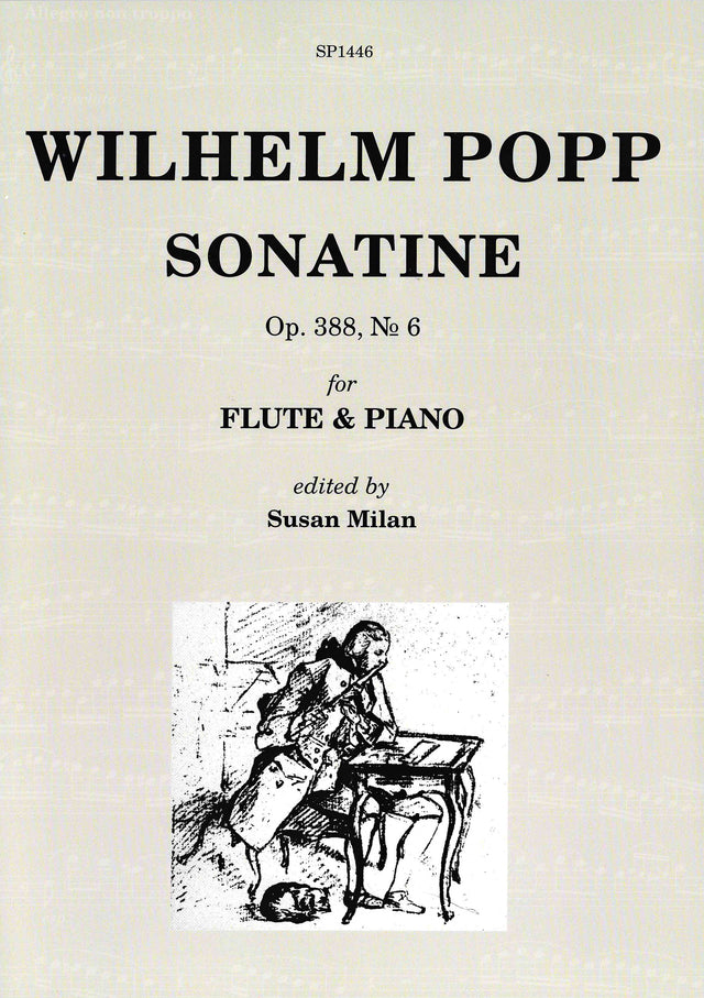 Wilhelm Popp studied with the great Louis Drouet in the 1850s and wrote many charming works for the flute, this among them. Susan Milan, acclaimed soloist and teacher, has edited this elegant edition. Susan Milan writes.... "I discovered the charming Popp Sonatinas, Op. 388 while researching 19th century flute repertoire in the British Museum Library. They were first published in Hamburg in 1888. These beautifully crafted works are all, without exception, a delight to play and suitable for a broad level of player. They are a lovely example of Classical style and detailed in a way that makes them a joy to perform and as they are less than 10 minutes long, they are a perfect addition to a short recital programme. in editing the Sonatinas I have tidied some of the articulation, making the flute part consistent. Discrepancies between markings in the flute and piano part have been corrected. I have occasionally added some slurs where I feel the lyrical nature of a section might be enhanced, shown as "dotted" slurs. Where staccati appear to be missing, I have added them. I have not on the whole added expression marks. I have not changed or removed original markings."