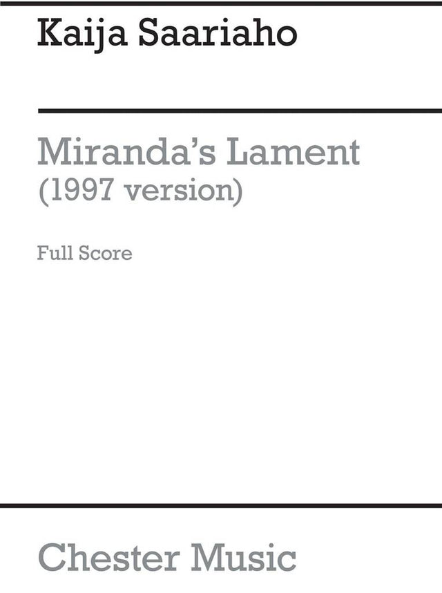 The original version of Miranda's Lament. Composed in 1997, the piece is part of 'The Tempest Songbook' and was dedicated as a birthday present for Paavo Heininen.