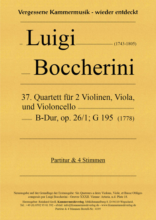 • Work: String Quartet in B-flat Major, G 195, Op. 26, No. 1