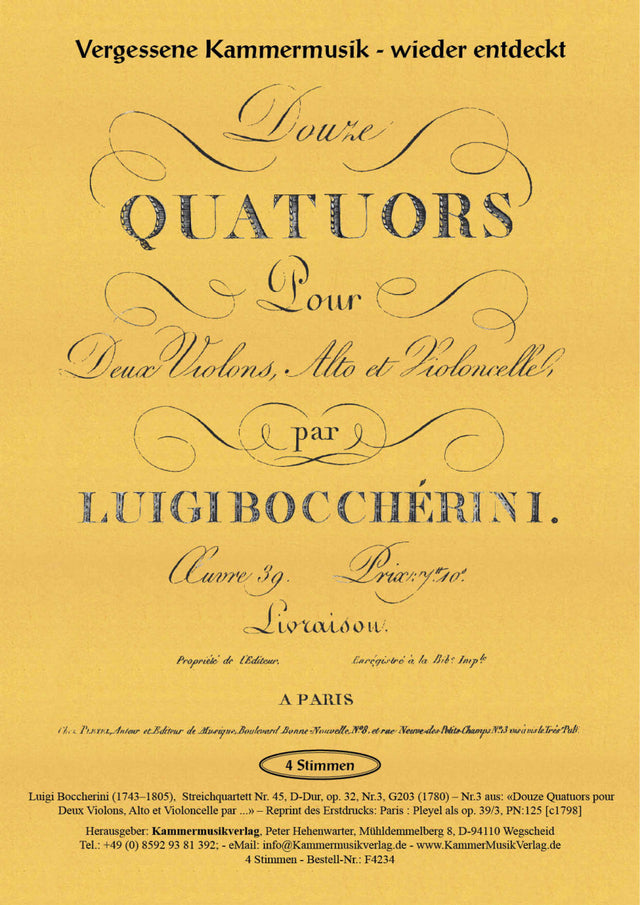 Boccherini: String Quartet in G Major, G 234, Op. 52, No. 3