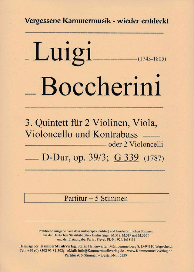 - Work: String Quintet No. 3 in D Major, G 339, Op. 39, No. 3