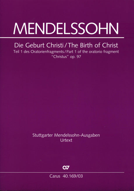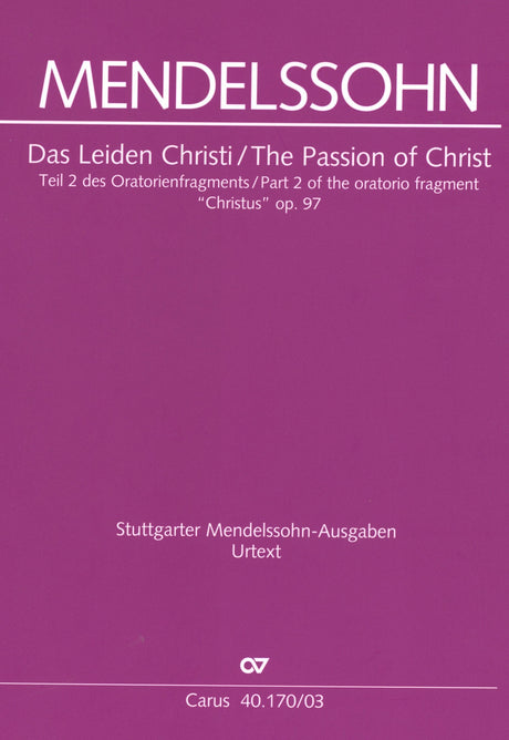 Options: Vocal Score, Study Score, Complete Orchestral Parts: 2.2.2.2 – 2.0.3.0 – timp –...Part I of the Oratorio Fragment "Christus", MWV A 26, Op. 97