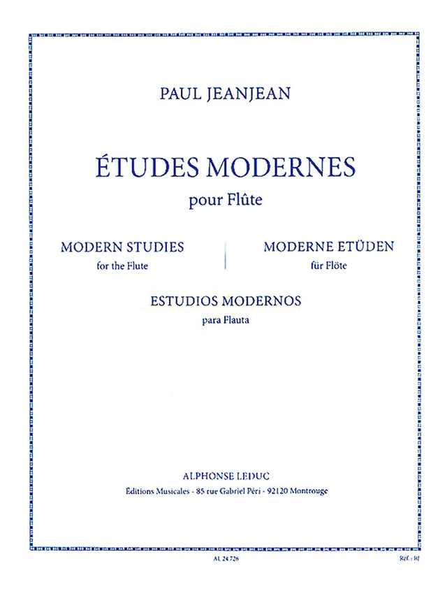 Modern Studies for the Flute is a set of sixteen studies by Paul Jeanjean (1874-1928). Composed in 1868, and initially composed for clarinet, these studies would fit advanced players. Each one of these Modern Studies is 3 or 4 pages long and extremely technically challenging. They all require strong attention, good endurance and they could be used to prepare the player for combinations of chords and rhythmic figures of contemporary music. Paul Jeanjean (1874-1928) is a French composer known for his clarinet compositions. He also composed 'Vade-Mecum of the Clarinet Player,' 'Arabesques' and 'Clair Matin.'