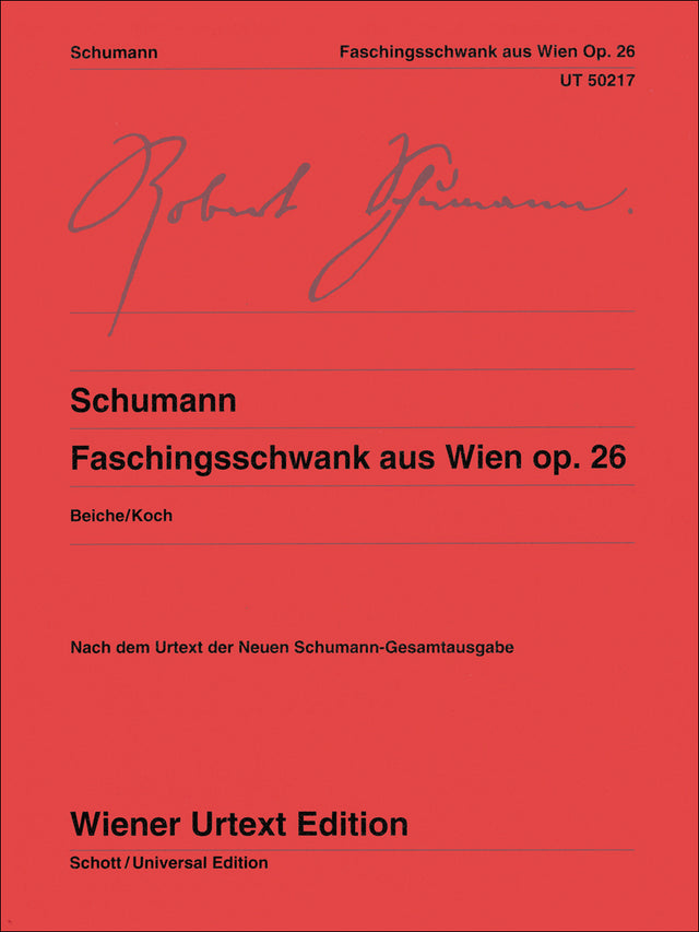 Robert Schumann's "Faschingsschwank aus Wien, Op. 26" is among the composer's most popular and most studied piano cycles. Originally conceived as a ‘grand romantic sonata', the work presents pictures of lively carnival revelry. Based on the musical text of the New Schumann Complete Edition, this edition thus represents the current state of Schumann research. The notes on interpretation by Tobias Koch took into account the sound characteristics of the pianoforte and different sources from Schumann's circle.