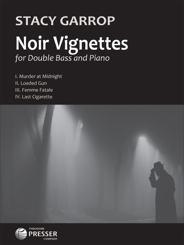 The film noir genre of 1940s cinema typically includes a strong but flawed male lead (often a detective), a beautiful woman who coerces the male into committing murder or is a killer herself (a "femme fatale"), and a twisting plot line that involves one or more homicides. These movies typically are shot in black and white, with emphasis on shadows and light, alcohol and cigarettes, trench coats and fedoras. Most of the story lines do not have happy endings. Inspired by this genre, Noir Vignettes consists of four movements, each depicting an aspect of film noir: