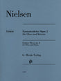 Carl Nielsen's Fantasy Pieces for oboe and piano were composed in 1889-90. Having just gained a position as a violinist in the Royal Danish Orchestra, Nielsen had already experienced success with his String Suite, Op. 1 both as a composer and as a conductor. Several sketches and autographs bear witness to his intensive work on these contrasting pieces for oboe, which were to appear in 1890 as his Opus 2. The two movements, Romance and Humoreske, are dedicated to the oboist Olivo Krause who played in the royal orchestra. His beautiful tone and virtuosic technique probably played no small part in the fact that these miniatures by the "young, talented composer" took the public and critics by storm at their first performance in March 1891.