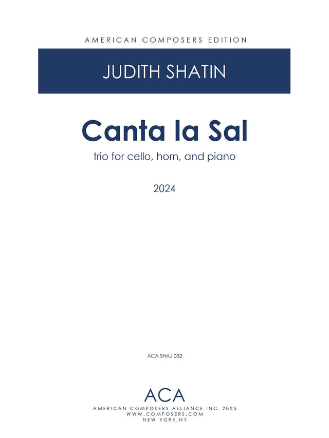 The title Canta la Sal is drawn from Pablo Neruda's profound poem Oda a La Sal. One of the joys of creating music for particular performers is the discussion that goes into the process. Early on, when asked if she had any particular ideas that she wished to share, hornist Anne Howarth mentioned salt – how it is essential for life and how it is dissolved in both the tears of our sadness and of joy. This resonated with me, and as I undertook some research into the topic it led me to Pablo Neruda's magnificent ode. in it, he speaks eloquently of the singing of salts on the-flats, the mountain of buried light in the mines, the transparent cathedral, the crystal of the sea and the wonders of its flavor. Salt connects the intimacy of our tongues to the enormity of the oceans. These images and metaphors inspired the harmonic, rhythmic and timbral trajectories of the trio.