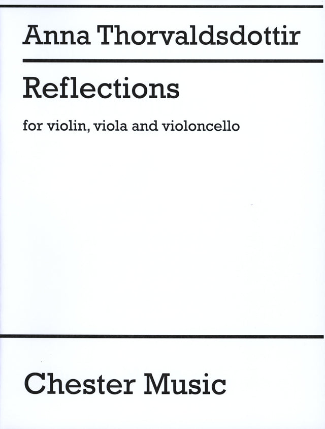 Reflections was written for Nordic Affect. The first performance was given on 30 September 2016 in Reykjavik, Iceland. Arranged for violin, viola and cello.Anna Thorvaldsdottir frequently works with large sonic structures that tend to reveal the presence of a vast variety of sustained sound materials, reflecting her sense of imaginative listening to landscapes and nature. Her music tends to portray a flowing world of sounds with an enigmatic lyrical atmosphere.