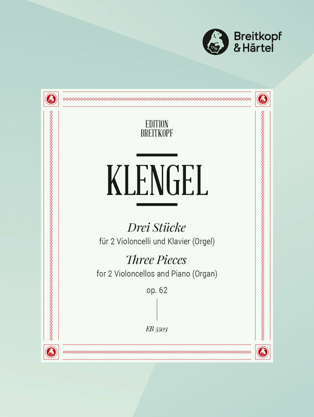 And since Klengel was blessed with a great deal of imagination, he wrote many of his pedagogical pieces himself. The Three Pieces, Op. 62 are technically demanding. This group, which Klengel composed in the last years of his life, contains atmospherically enchanting trios. They are also ideal for church concerts when the organ is used as the keyboard accompaniment.