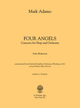 Four movements: Overture: Metatron; Scherzo: Sraosha; Aria: Regina Coeli; Finale: Mik'hail. Commissioned by the National Symphony Orchestra of Washington. The passionate and protean angels of art and scripture bear little resemblance to the images of simpering cherubim everywhere prevalent in mass culture. Likewise, the charismatic, potentially dominant harp— inevitably underscoring those images—has been constantly caricatured as just the golden vehicle of glamourous, glissando sentimentality. I wondered: could one make a concerto that uses only the personae—not any explicit narrative—of angels from different cultures to liberate both image and instrument from centuries of cliché? — Mark Adamo