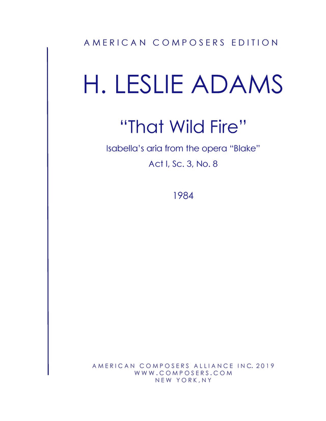 H.L. Adams: That Wild Fire (Isabella's Aria)