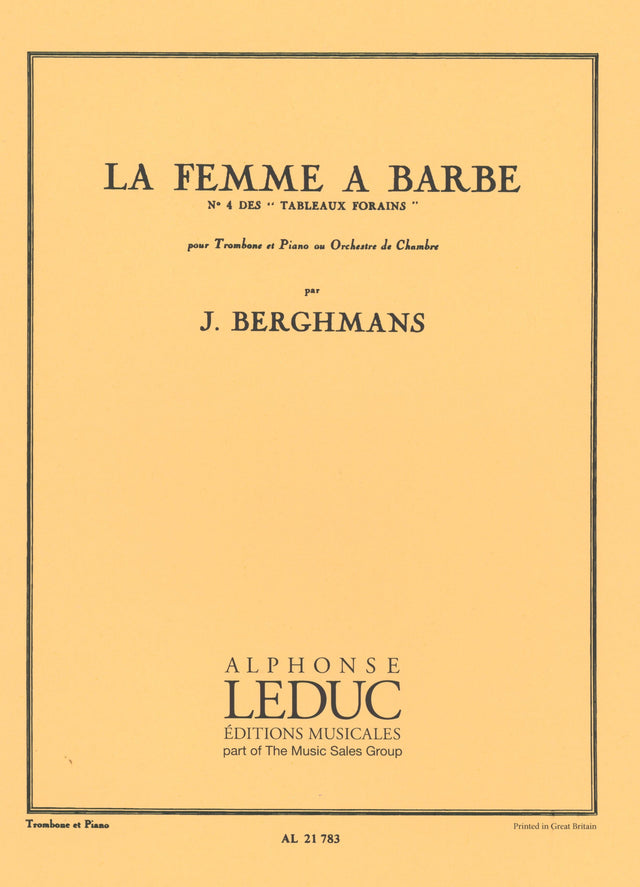 French composer and musicologist José Berghmans (1921-1992) studied at the Brussels Conservatory and at the Paris Conservatoire under Olivier Messiaen. His The Bearded Lady remains popular within the Trombone repertoire. Berghmans was a significant composer of film music and therefore, much of his music was dramatic and expressive. The Bearded Lady comes from Berghmans' Fairground Tables. The Bearded Lady is dramatic and expressive, containing much variation in articulation, rhythm, range, tonality and performance directions, amongst other aspects. for all intermediate to advanced trombonists, Berghmans' The Bearded Lady provides an exciting addition to the repertoire.