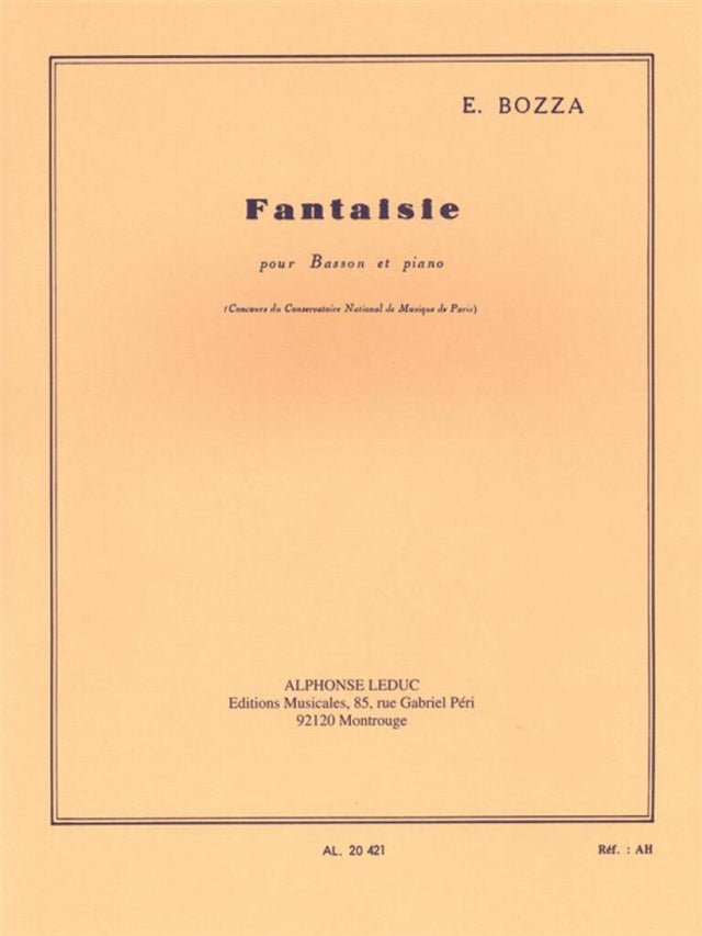 To this day, Eugène Bozza (1905-1991) remains one of the most prolific composers for wind instruments, despite being a violinist himself. His Fantasy for bassoon and piano is no exception to the composer's success. During his studies at the Paris Conservatoire, Bozza won prizes for violin, conducting and composition, as well as the Grand Prix de Rome. He then conducted the orchestra of the Opéra-Comique and became Head of the Conservatoire in Valenciennes, whilst remaining a prominent composer. Composed in 1945, Bozza's Fantasy for bassoon and piano is a virtuosic work, addressing advanced features including complex rhythms, chromaticism, a wide range and articulation. As music educationalist, Paul Griffiths has written of Bozza's compositions, "his works reveal melodic fluency, elegance of structure and a consistently sensitive concern of instrumental capabilities."