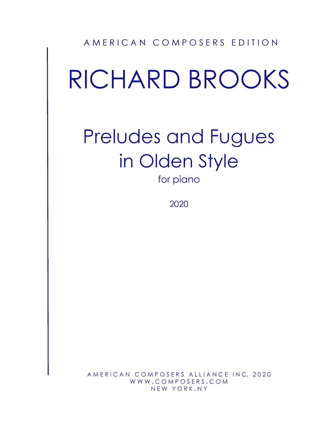 During the recent Covid-19 crisis I had a lot of time to fill. I amused myself by composing these pieces. There are four fugues and nine preludes. They can be performed individually in any order or combination. in keeping with the "olden style' idea there are no dynamic indications. in addition, though the score is for a keyboard set-up they may be performed by any three or two instruments.