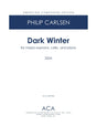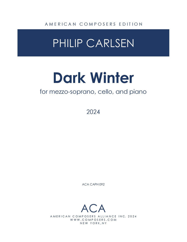 The text for this song, Jeri Theriault's poem "Dark Winter," was inspired by Gideon Bok's painting of the same name, depicting a dark loft-like studio space high above the city, drenched in deep blue, both inviting and vaguely menacing. Theriault imagines a couple on the verge of divorce, drawn in desperation to Bok's room: "we swore this place would save us." The musical setting bathes the words in harmonic resonance, echoes, hints of water drops.