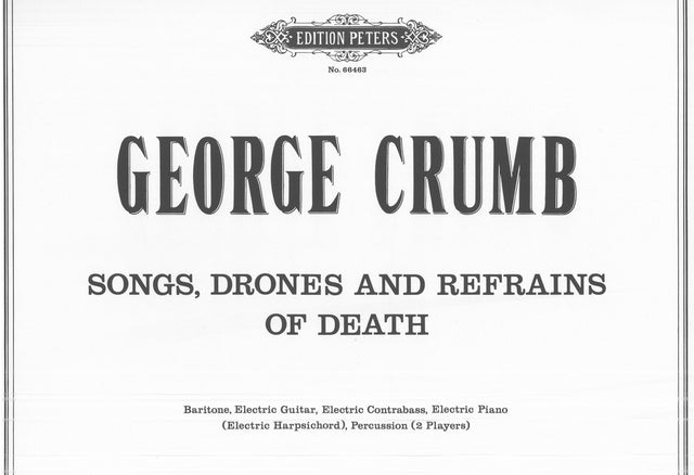 Of the eight works constituting the cycle [based on the poetry of Fedérico García Lorca] 'Songs, Drones, and Refrains of Death' is the largest in conception and the most intensely dramatic in its projection of Lorca's dark imagery. Lorca's haunting, even mystical vision of death - which embodies, and yet transcends, the ancient Spanish tradition - is the seminal force of his dark genius. in composing 'Songs, Drones, and Refrains of Death' I wanted to find a musical language which might complement this very beautiful poetry. (George Crumb).