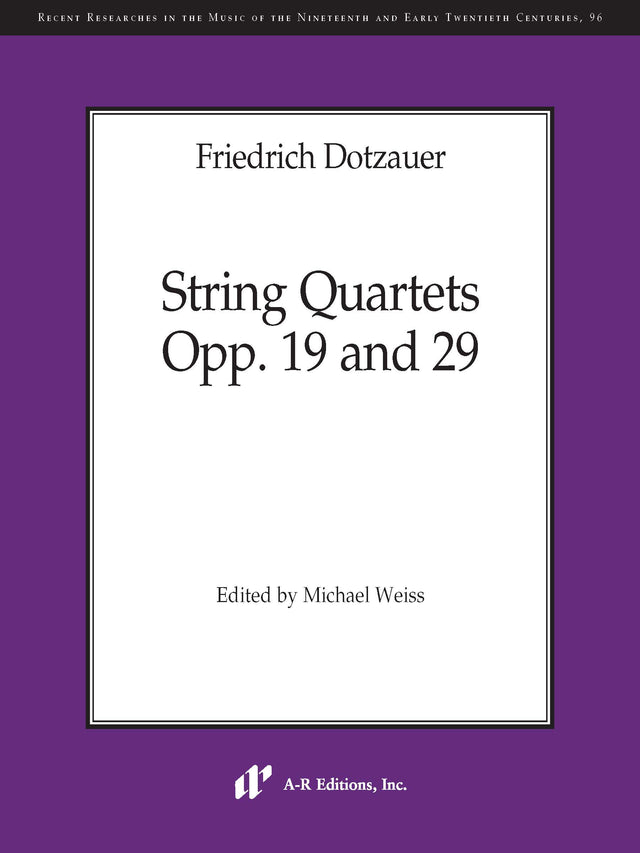 Cellist Friedrich Dotzauer (1783–1860), though best remembered for his pedagogical legacy, was also a prolific and successful composer and a pioneering string quartet performer in Leipzig and Dresden. in addition to many solo works for his own instrument, Dotzauer wrote some twenty-five string quartets and numerous other chamber works, many of which feature the cello in a prominent role. This edition presents four of Dotzauer's quartets that together demonstrate the versatility of his writing. The three quartets of opus 19, with their more modest technical demands and the conventional distribution of material between the four instruments, was likely intended for amateur, private music-making, whereas the opus 29 quartet, which features more virtuosic writing for the first violin and cello, was probably conceived for the public concert sphere. Both opuses reveal Dotzauer's noteworthy compositional skills through their comprehensive development of motives and sophisticated treatment of texture and form.