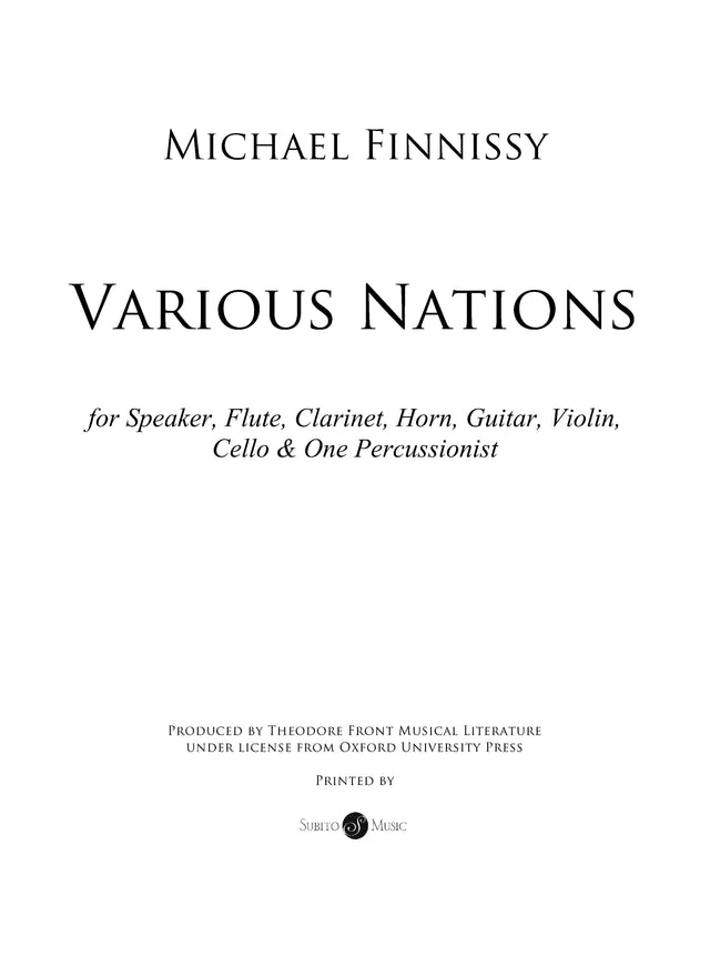 for speaker, flute, clarinet, horn, percussion, guitar, violin, and cello