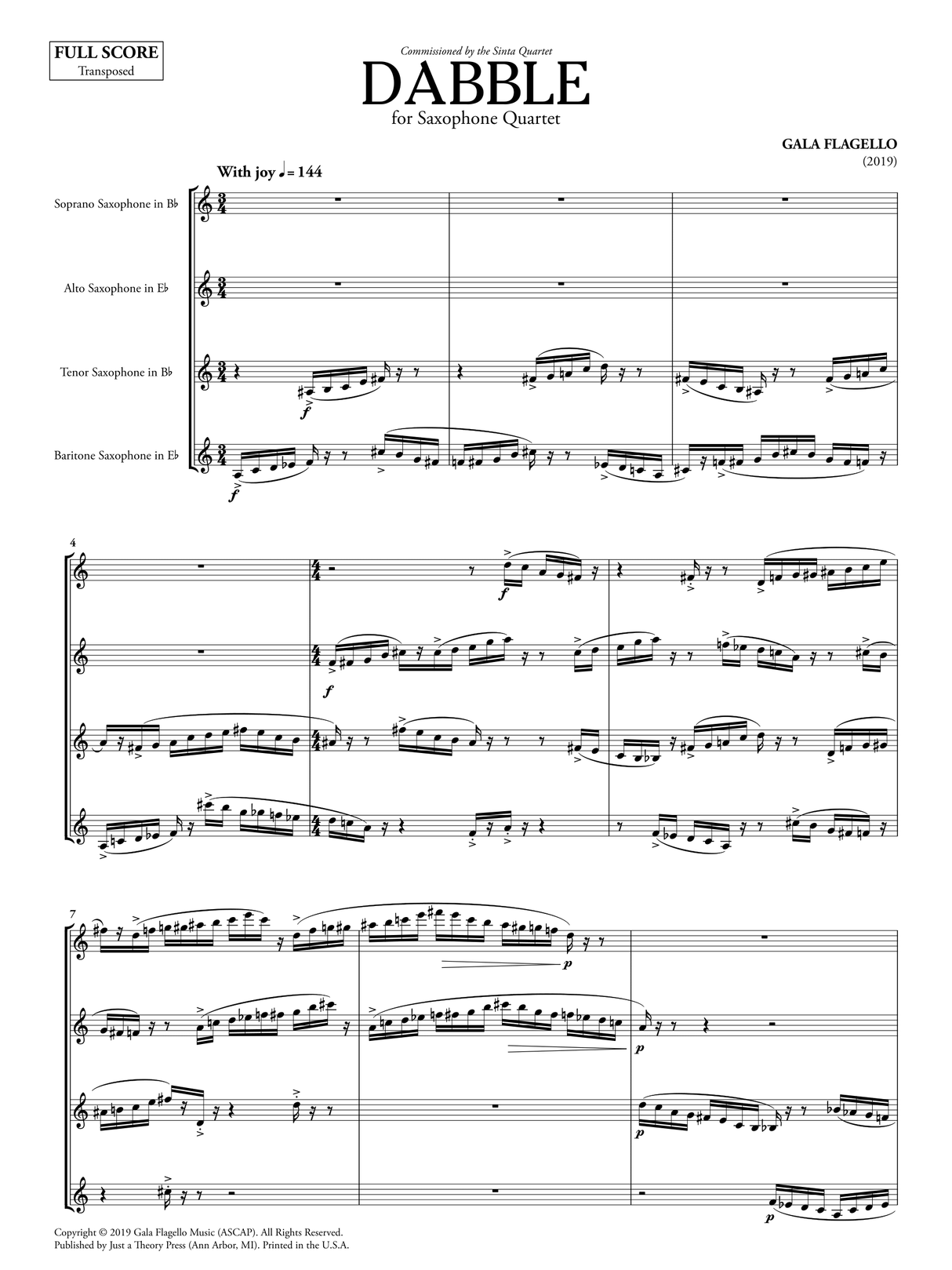 - Instrumentation: Saxophone Quartet (Soprano, Alto, Tenor, Baritone)