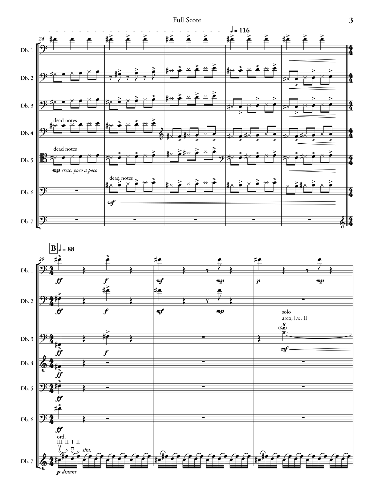 Droughts and Downpours , for bass septet, Gala Flagello (2024)