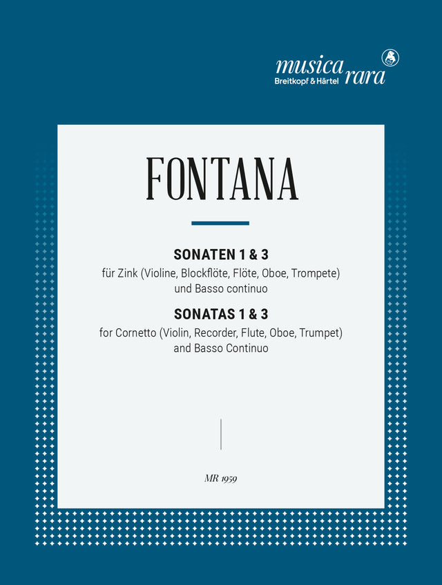 The present sonatas are from the posthumous volume of Fontana's solo and ensemble sonatas' that was published in 1641 by Bartolomeo Magni. Fontana was among the first, along with Biagio Marini, to compose sonatas in distinctly instrumental idiom, derived mainly from violin style, but leaving open the possibility of performance by other instruments, most notably the cornetto.