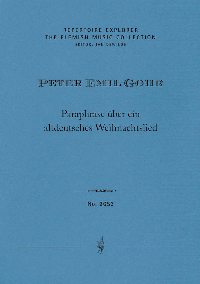 Peter Emil Gohr mainly composed songs (often set to German poems), folk song arrangements for various settings, (dance) music for piano solo, piano four hands and two pianos, and some chamber music works, including a Trio in F Dur für Piano, Violin and Violoncelle (Repertoire Explorer. The Flemish Music Collection 2533). for the same instruments, he wrote this Paraphrase über ein altdeutsches Weihnachtslied, probably in 1885. That Christmas song, introduced after two bars of introduction, is O du fröhliche, whose text for the first of the three stanzas was written by Johannes Daniel Falk (1768-1826). The melody goes back to the Marian hymn O Sanctissima sung in Sicily at the end of the eighteenth century.