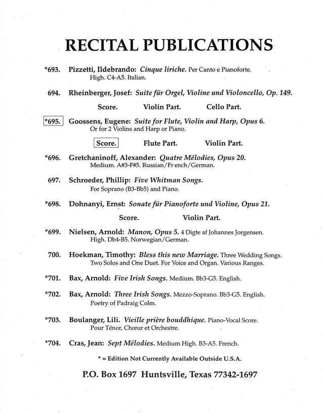 Goossens: Suite for Flute, Violin & Harp, Op. 6