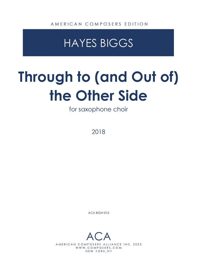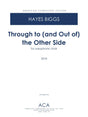 Through to (and Out of) the Other Side is in a single movement comprising several sections. The first is fast, syncopated and edgy, gradually morphing into a gigue-like rhythm. After a series of episodes this section gradually cycles back to the material of the opening, with siren-like wailing in the altissimo registers of the soprano and top two alto parts. A transition ensues, with some rock and jazz elements and a hint of bluesiness, interrupted from time to time by soft four-part harmonies marked "senza vibrato, ethereal, disembodied." A very brief accelerando outburst yields to the heart of the work, a slow movement that is by turns lyrical and austere, with fairly large pauses interspersed, suggesting vast spaces. The opening sonority of this section is a simple simultaneous interval of in a Minor third (C to E-flat), which happens to be the opening sound of a haunting late work of Mozart, his Masonic Funeral Music. Not sure how this found its way in — it is not an exact quotation from Mozart's piece — but somehow it did. After the climax of this section, a stark two part chorale for the entire ensemble asserts itself, before the mood is swept away by the final section in waltz tempo.